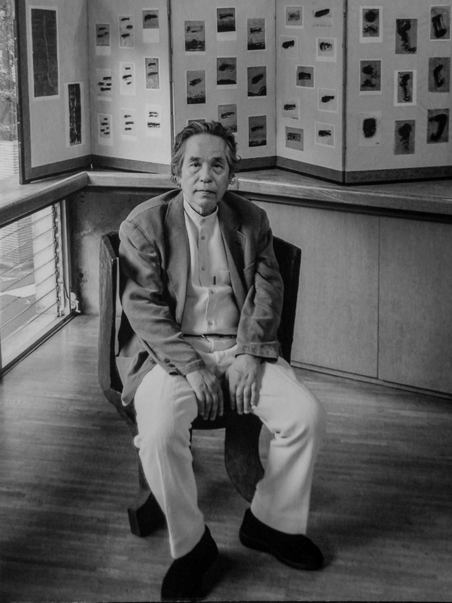 1987年、俵有作さんは20年を超える沈黙を破り墨や淡彩による絵画制作を再開させた。芹澤銈介作品との出会いが筆を折った理由と伝わっているが、描かれた絵画は師である小林和作や芹澤のそれとは異なっていた。しいて形容すれば、俵さんの運営したギャラリー華の展示品、なかでも中国の漢やアフリカのプリミティブな造形などに呼応していたと思われる(ギャラリー華は、目利きとして知られた俵さんの選品で満たされていた)。俵さんは自ら設定した画題、例えば「瑞雲」「一」「da Vinch を想うて」「波動」といったテーマを執拗に何百枚も、場合によっては千の単位で描き続けた。命を削るように創作された作品群は、まるで日課念仏の墨書のようで、見る者に強い感銘を与えたのである。 しかし、当時俵さんの画業を高く評価していたのは日本民藝館の関係者や坂田和實さんなど、彼の身近にいた人たちにとどまり、まだ一般に認知されるには至っていなかった(坂田さんは俵さんの版画集『宙・俵有作作品集Ⅰ』を所蔵し、美術館 as it is でも展示したのだ)。俵さんの仕事が衆目を集めたのは、歿後の2014年に練馬区立美術館で開かれた「俵有作展-水墨の波動」によってだろう。あれから10年、待望の展示販売会が青花室で開催される。聞くところによると練馬区美に出品した作品も含まれているらしい。この機会に多くの方々のご高覧を願いたい。(月森俊文「今展によせて」)