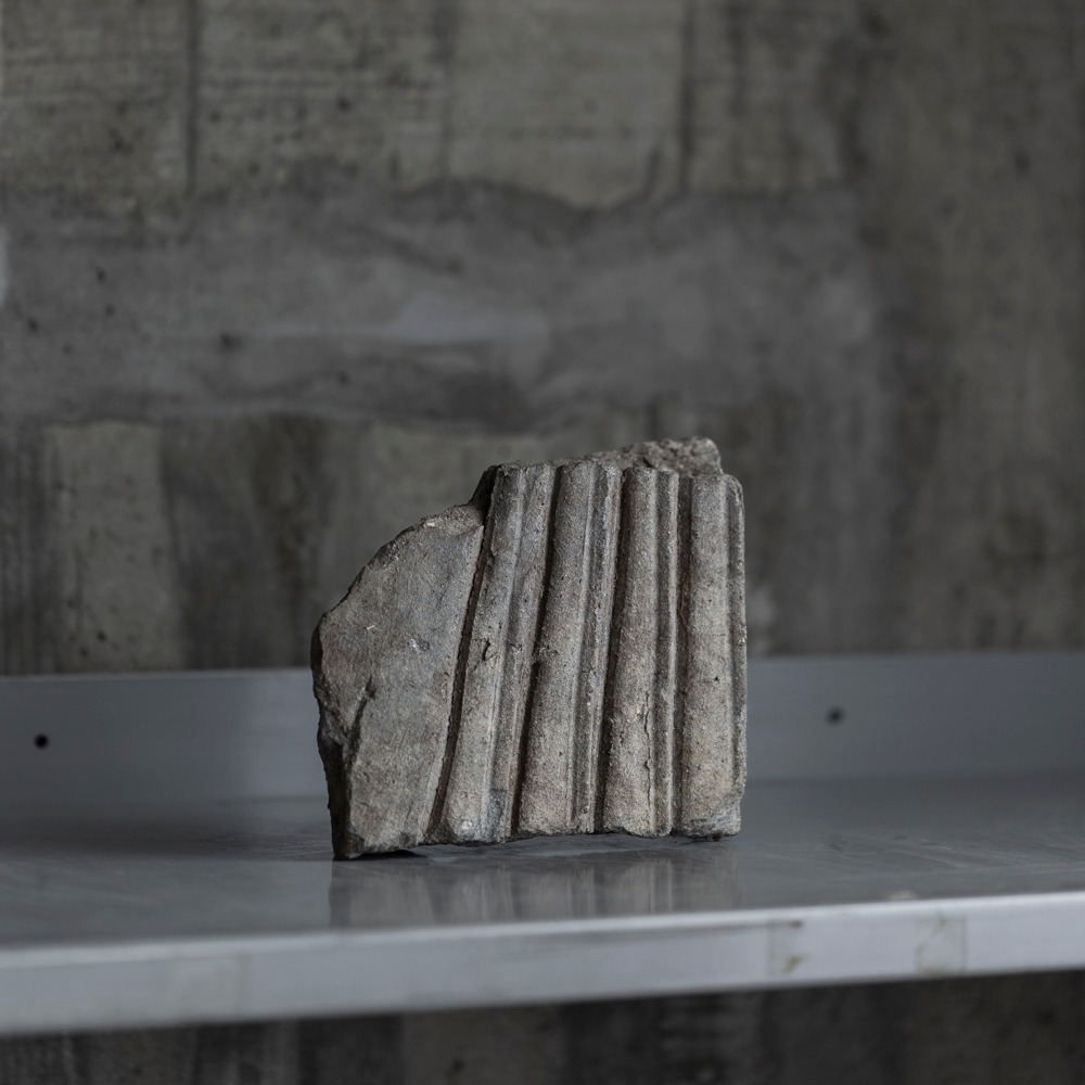 溝口廃寺(姫路)出土の鴟尾残欠(白鳳時代)。子持縞のようなストライプに、1300年の距離をわすれ、また思いだします。その往還が、古い美術のよいところです。─