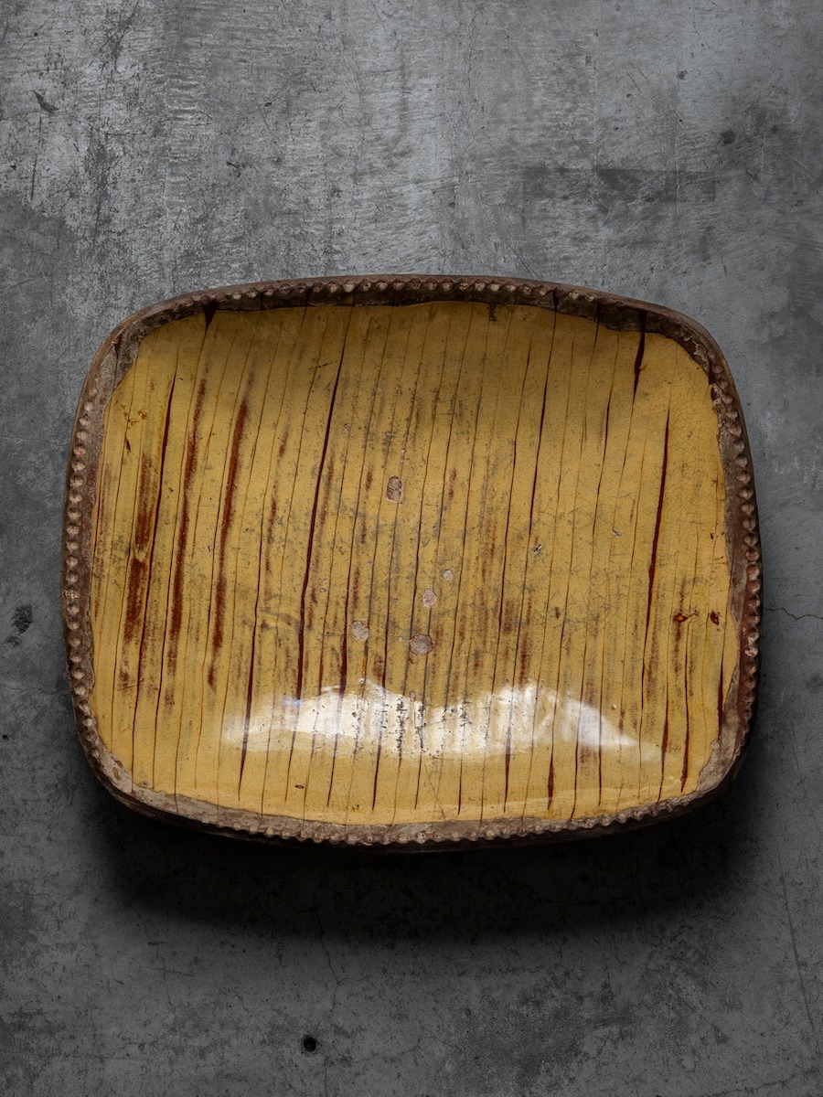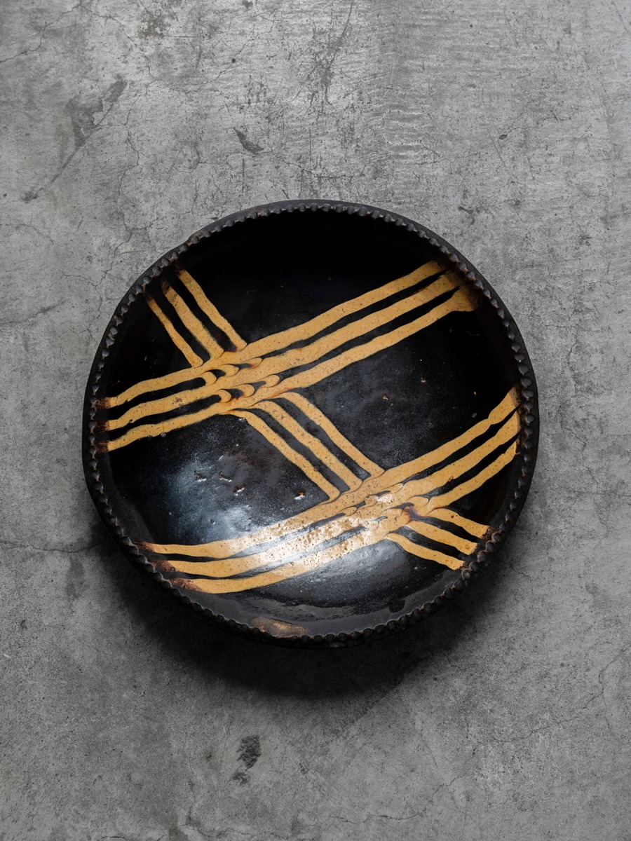 日本で「スリップウェア」というとおもに英国近世のやきものを指し、人物や動物文など鑑賞用の飾皿と、縞文はじめ抽象文の実用品(パイ皿)があります。彼地にさきがけ後者を美的に評価したのは日本人であり、代表はふたり、1920年代の柳宗悦と、1980年ごろの坂田和實でした。ことに骨董界における坂田さんの功績は大きく、(いまとなっては信じがたいけれど)スリップウェアが日本でほとんど売れなかったころから、こつこつと、抽象文の名品を日本に入れつづけました。今展は、坂田さんが請来したスリップウェア十数点ほか、欧州中世陶器や家具、コプト裂など西洋工芸を中心に、美術館 as it is の蔵品と古道具坂田由来の品々約60点を展観します。