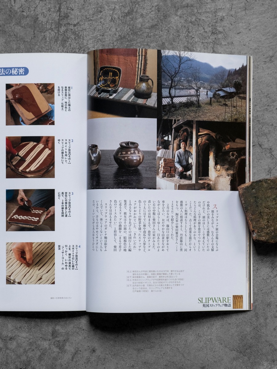私も取材したこの特集で、柴田さんは自身の技法をおしげなく図解する。現代日本の陶芸界は、おそらく世界的にも例外的にスリップウェアの器が多作され、人気もあるはずだが、そのきっかけ、素地は古作の魅力だけでなく、柴田さんによる技法的啓蒙も大きかったのではないか。とすれば、それはわすれてはいけないし、つたえつづけたほうが、と思った。