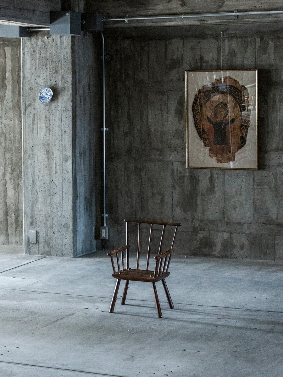 坂田室の設営中。次回は「スリップウェア」展ですが、テーブル、椅子、ベンチ、ドアなど、古い西洋家具もみごたえあります。サイトに、月森俊文さん(日本民藝館)の文章掲載しました。─