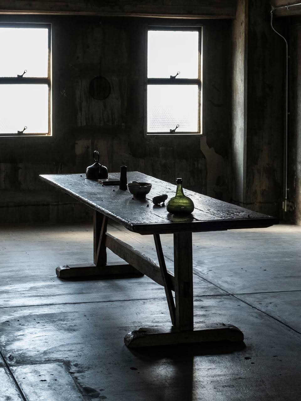 〈もしかしたら僕は大テーブルに、かつての囲炉裏のような機能を持たせたいのかも知れません。(略)仕事先や学校から帰ってきた家族がとりあえず囲炉裏端に集い、その日の出来事などをぽつぽつと語りあううちに、一家団欒の暖かな空気が満ちてくる〉(中村好文「大テーブル主義」『芸術新潮』2002年12月号特集「意中の家具」より)─