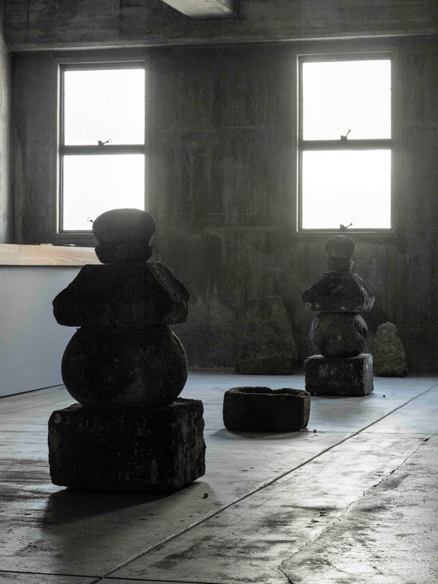 〈それ以来、無意識のうちにずっと「石」を追い求めてきたように思います。海へ出かけても好みの石拾い、家を建てるとなれば古御影の縁石や敷石を探し求め、この仕事に就いてからは李朝の石工品、日本の石仏、石塔、勾玉など考古の世界にまで興味は広がっていきました。(略)今回の展示会では、長い年月をかけて蒐めた様々な石のモノを並べます〉(安東敬三「今展によせて」)─