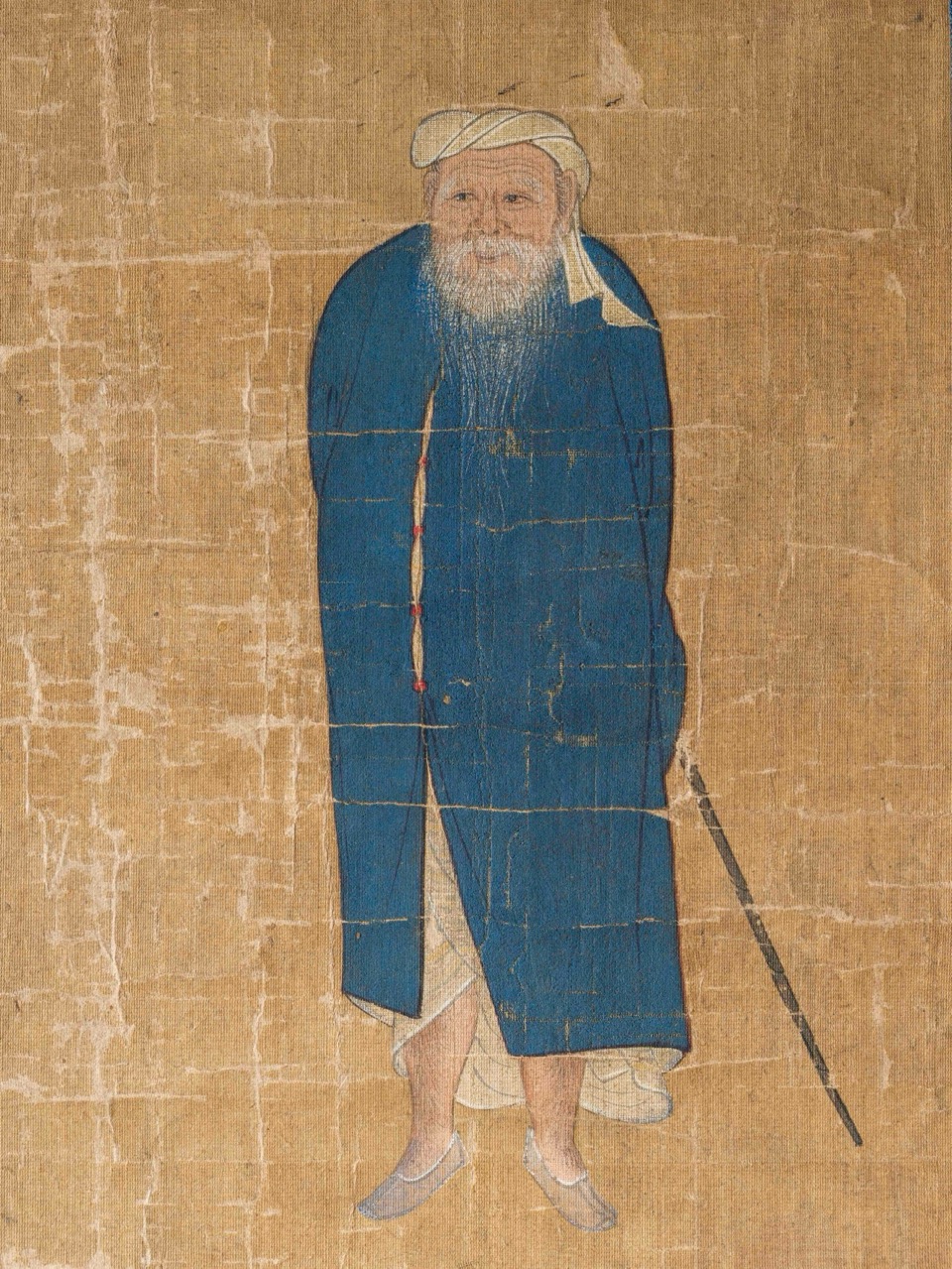 掲出の「唐画人物図軸」は、元明時代の作で、中央アジアの異郷人(イスラム教徒)を描いたものと思われます。世界中と交易のあった当時の中国で、もの珍しさから描かれた、異国人物絵巻等の一部であった可能性が高いと個人的には思っています。