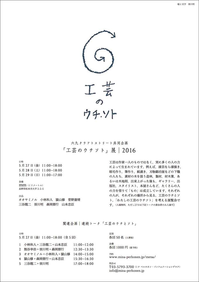 今週末の金土日、松本で「六九クラフトストリート」と「工芸のウチソト展」に参加します。今年は噂のユニット「ハヤシモリ」も初参加、27日には5連続トークもおこなうなど、一気に充実しました(写真はチラシです)。青花の会は本や器(坂井咲子さんの染付磁器)、ロマネスク・アクセサリのほか、金沢百枝さんセレクトによるカンタ(インドの古布)やオランダの古いサンプラー(練習用の刺繍布)などをならべます。ここ数年、参加しているのですが、いつもさわやかな気候で、気持も晴れ晴れします。お待ちしております。S