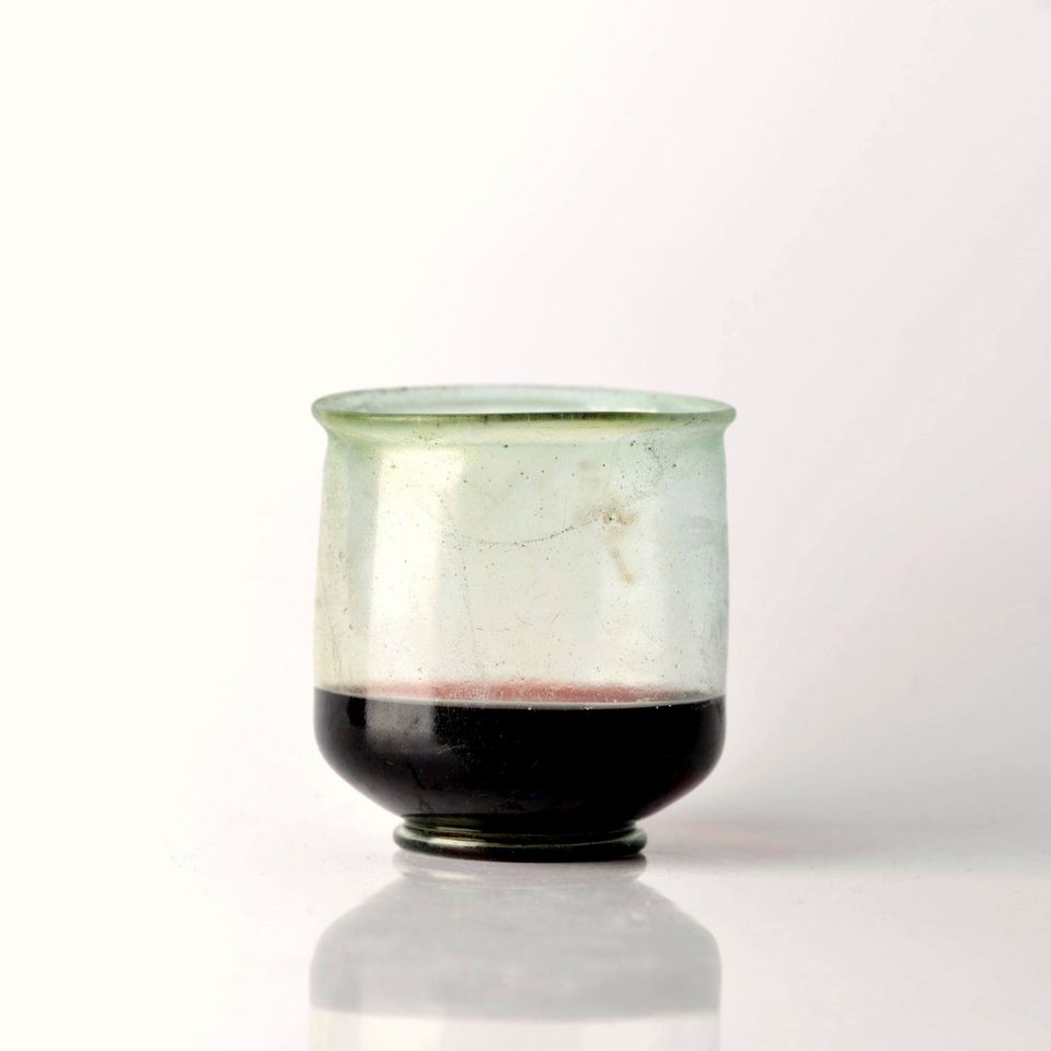珍しい筒形のローマングラスです。しっかりとしたガラスのため使用でき、ワインを注ぐと綺麗です。呑む際の口当たりも良く、古代ローマの気分が楽しめます。