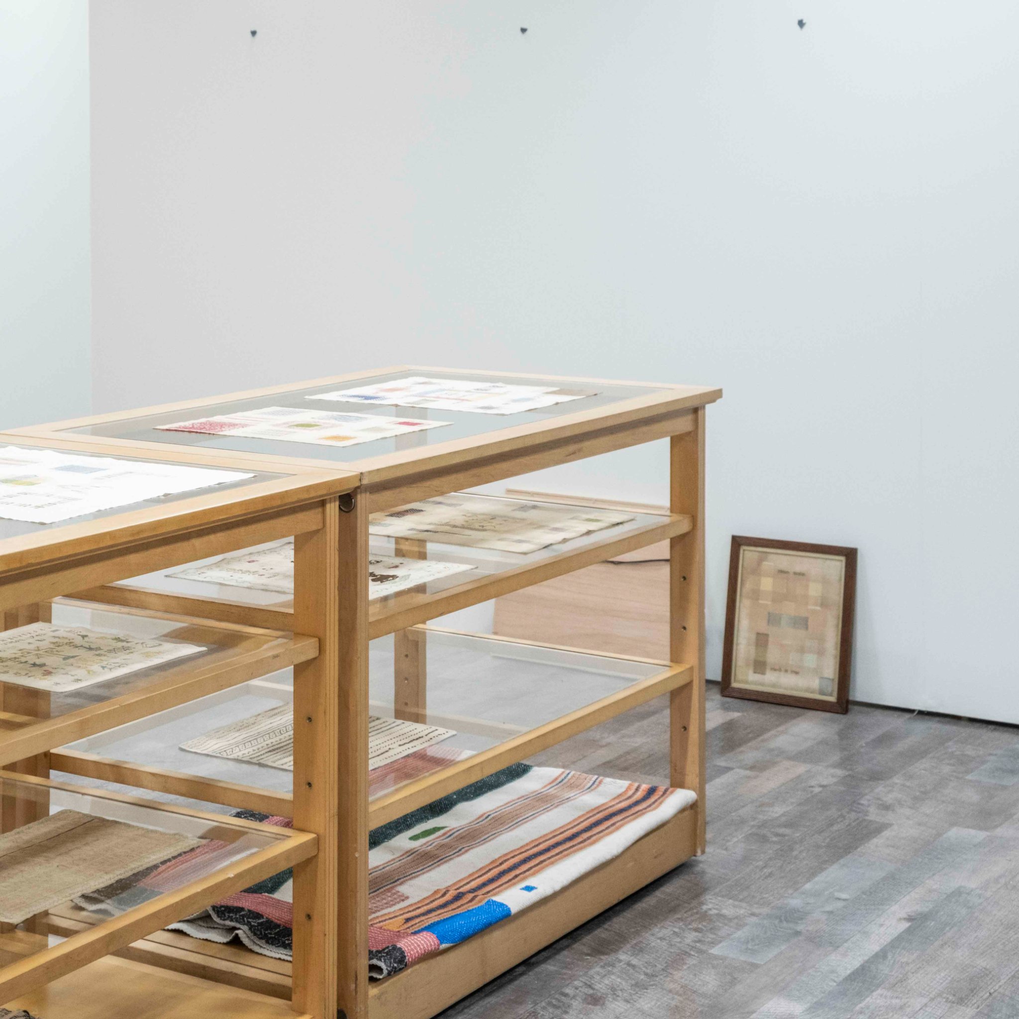設営中。明日からです。美術史家・金沢百枝さんがえらんだオランダの古いサンプラー(少女たちの刺繍布)もひさしぶりに展示します。─