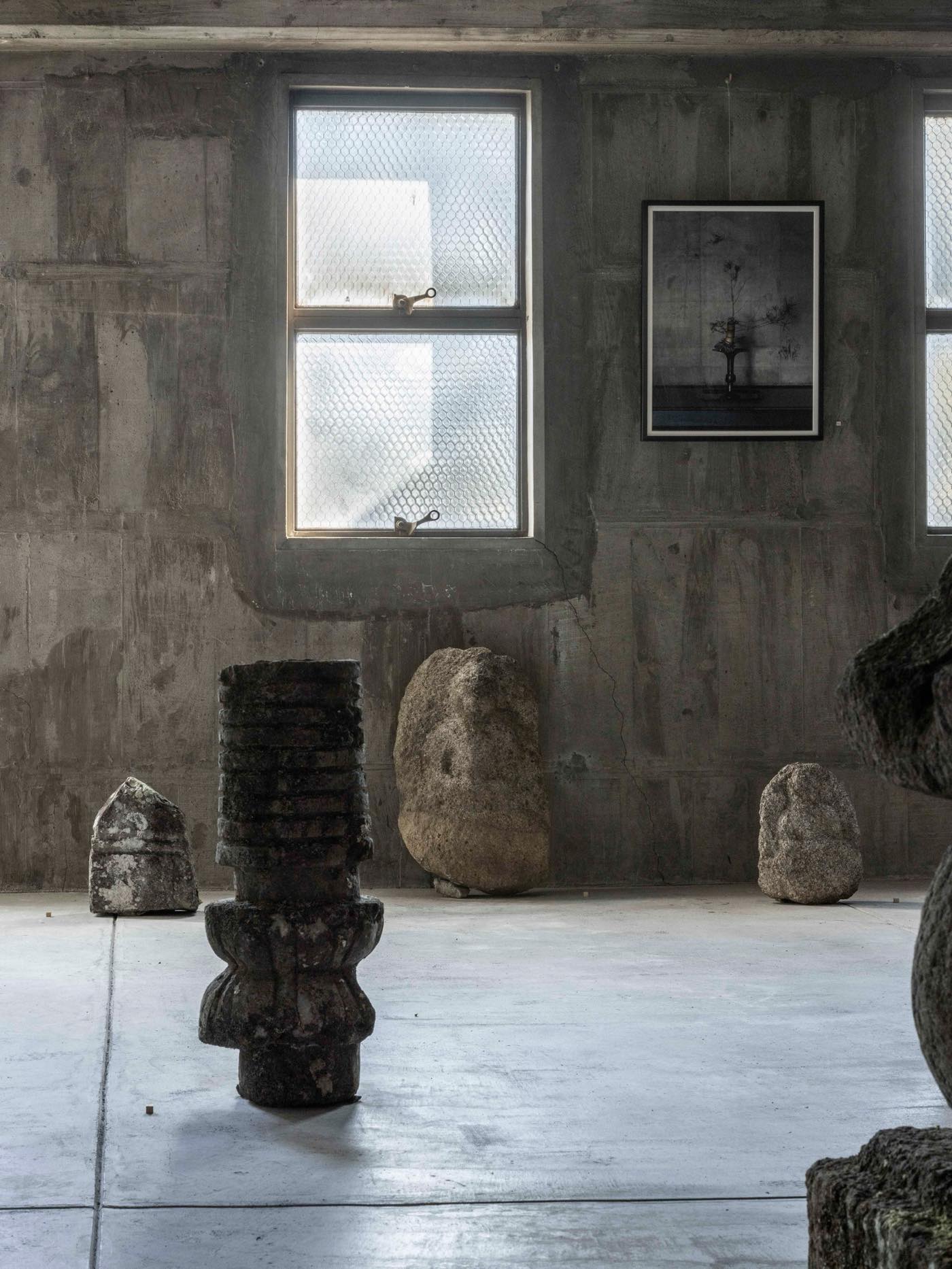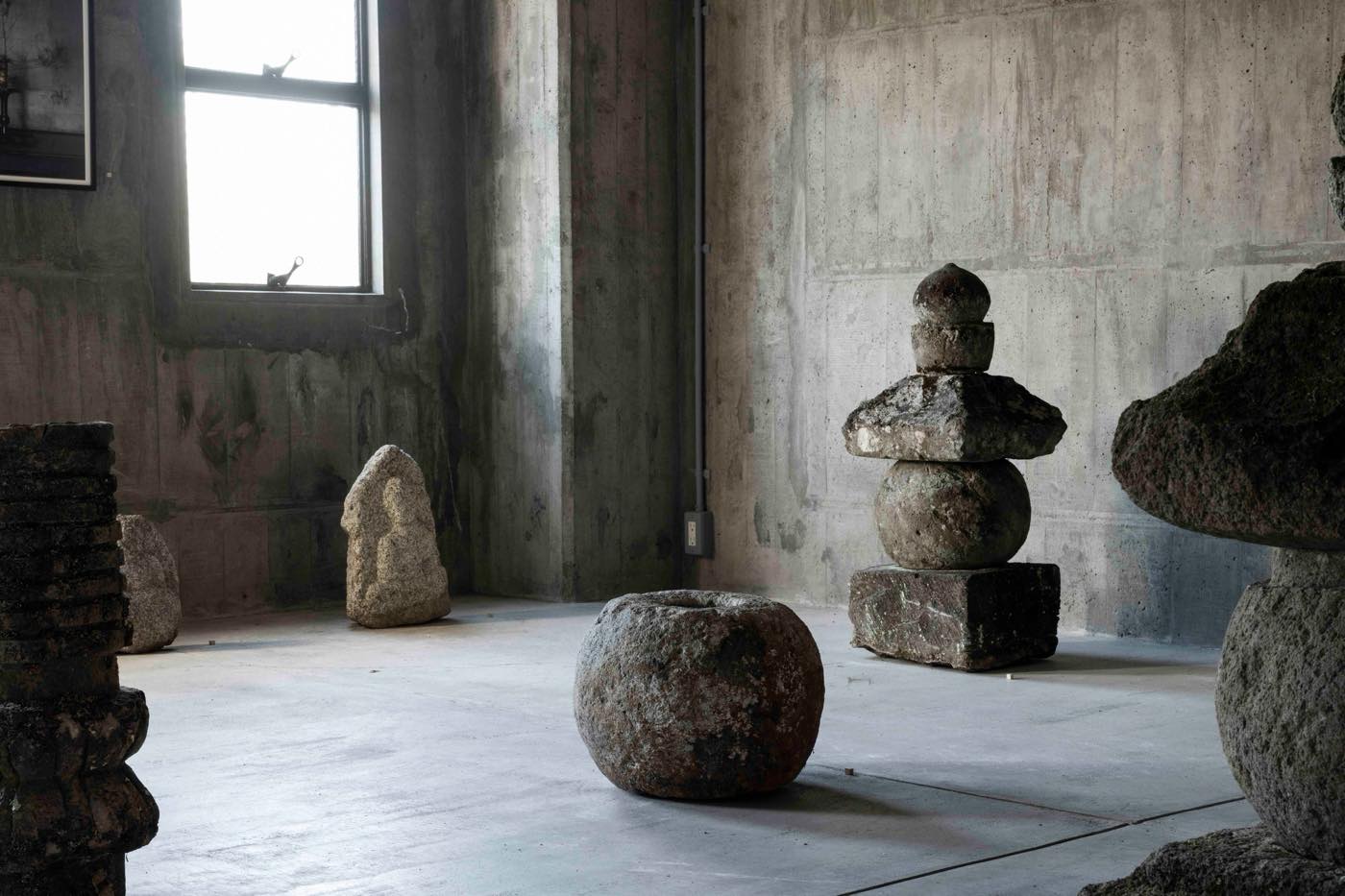 〈それ以来、無意識のうちにずっと「石」を追い求めてきたように思います。海へ出かけても好みの石拾い、家を建てるとなれば古御影の縁石や敷石を探し求め、この仕事に就いてからは李朝の石工品、日本の石仏、石塔、勾玉など考古の世界にまで興味は広がっていきました。(略)今回の展示会では、長い年月をかけて蒐めた様々な石のモノを並べます〉(安東敬三「今展によせて」)─