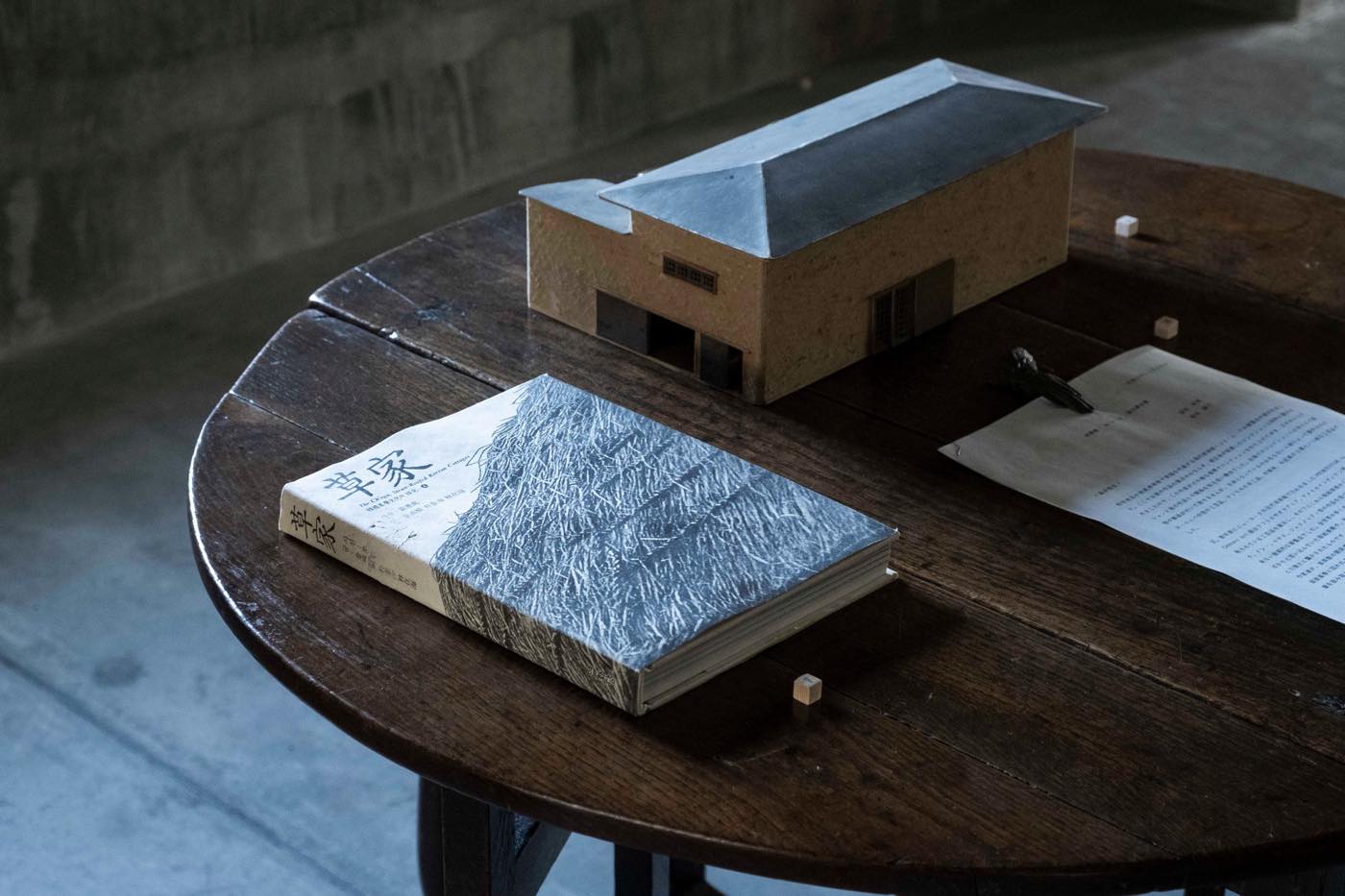 写真1点目は、古道具坂田にながくおかれていた韓国の茅葺民家の写真集『草家』と、坂田さんの個人美術館 as it is 模型(中村好文設計。1994開館)。