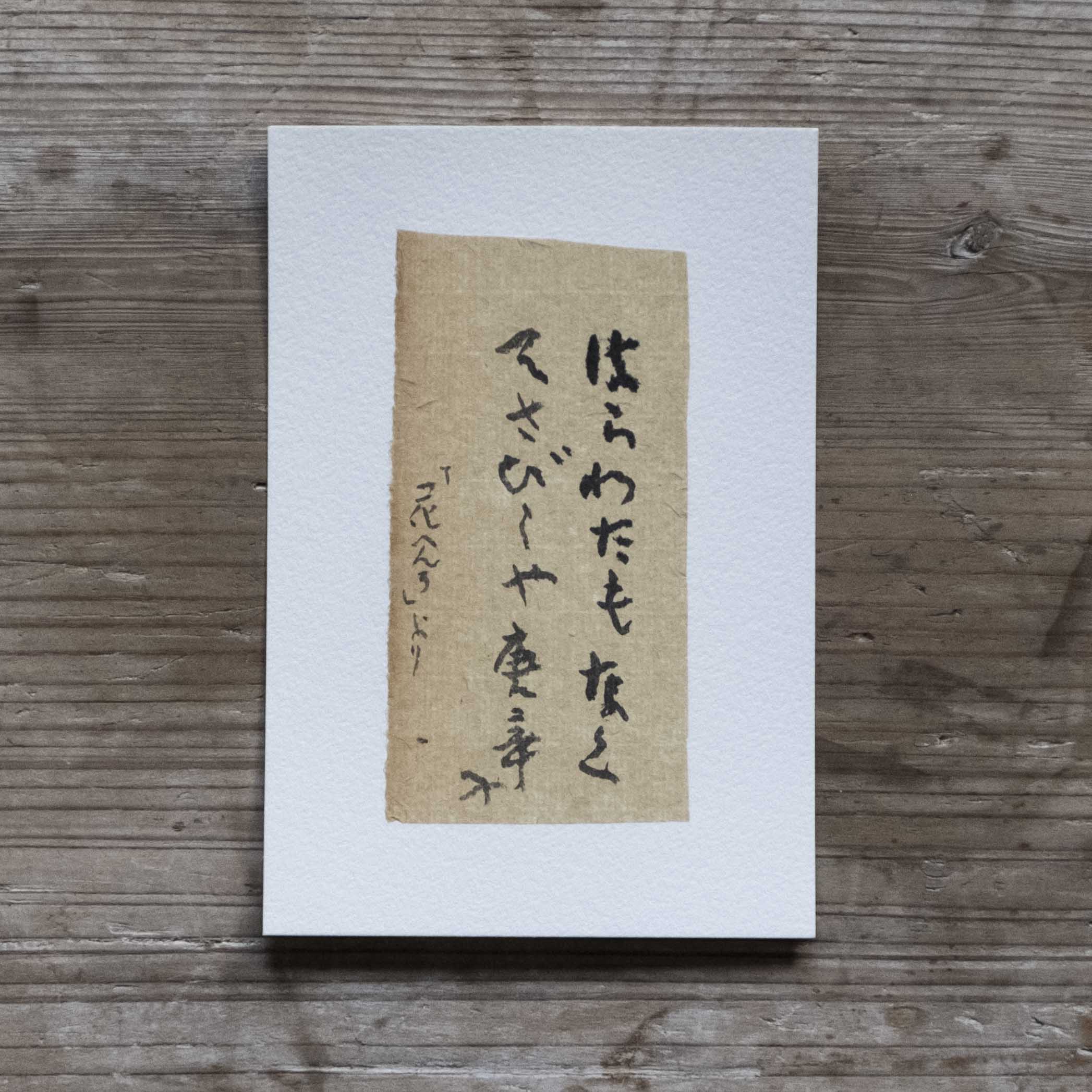 一昨年につづき、書家の日置路花さん(1936年生れ)の展観をおこないます。今回は小品が主です。この9月まで、坂田和實さんの個人美術館as it isで、路花さんの書の展示がおこなわれていました。坂田さんは路花さんの書について、〈拙とか只とか素といわれている世界 〉に〈限りなく近い〉としています。路花さんは長年、子どもたちに書を教えてきました。2015年に「文字の美」展を開催した日本民藝館の月森俊文さんは、「子どもの字、その無心の美が路花さんにはわかっていて、そこに自身の書を近づけようとしてきたのではないか」と語っています。しかも、作為をこえて。現代の作家にとって、それはとても困難な道です。陶芸家の安藤雅信さんは『老子』の〈大巧若拙(大巧は拙なるがごとし)〉を引いて、路花さんの書と生活工芸派の器に共通する「拙」(への志向)性をみいだしています(こうした「坂田+路花」論は『工芸青花』15号で特集します)。作家にかぎらず、無心であることはむつかしい。けれど、路花さんの書は、そのたたずまいとありようによって、無心なるものへの回路となりえているようにみえます。